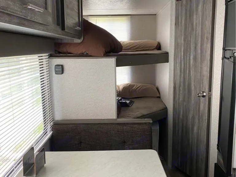 You'll absolutely love our Travel Trailer. It is lightweight (3,980 GW) and easy to transport with an suv or truck.It has bunk beds, a full size bed, and plenty of storage inside and out.Our camper can comfortable fit 4 guests or 2 adults and 4 children (2 per bunk bed).You'll have access to a T-Mobile Hotspot and Amazon Fire Stick to watch your favorite shows.Kitchen supplies such as cook ware will be included.Whether it's your first RV experience, or a few weeks-long journey, this comfortable camper will give you a home away from your home and bring impressive memory to remember.There will be 2 days in between bookings to professionally clean and sanitize before next use.