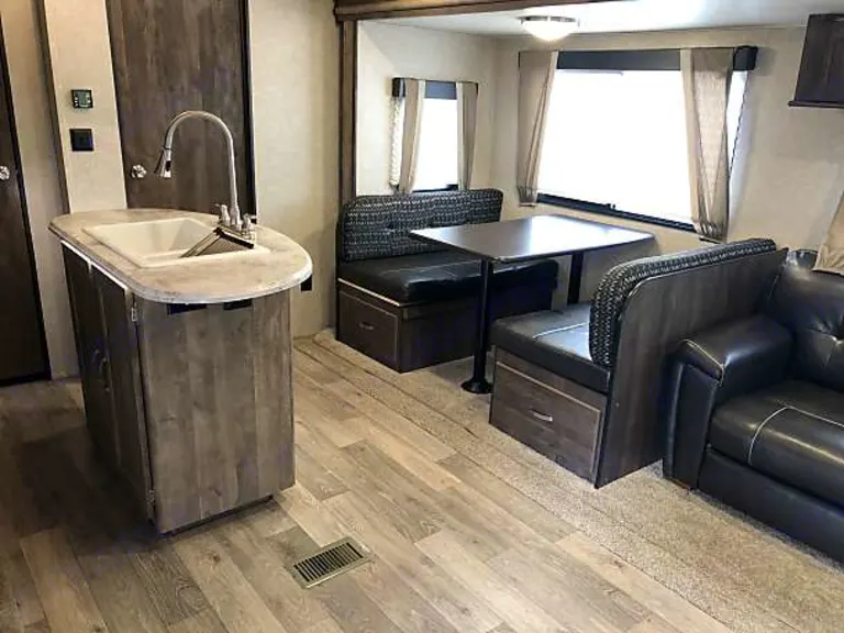 Matt and Jackie’s Kid Approved Camper Rental! Beautiful new 38’ travel trailer with all the amenities you and your kids will need to have a trip of a lifetime. The camper has 3 slides, allowing for an enormous amount of space. The kitchen includes an island and a residential refrigerator. The bunk room is perfect for kids; 2 bunk beds and a pull out couch. Family room has a pull out couch and TV with DVD player and over the air HD TV. Surround sound includes speakers inside and outside. Outdoor kitchen with attached grill and mini fridge. Master bedroom has a queen sized bed with its own door for privacy. Linens and cookware included. Matt and Jackie’s camper is exactly what you need for your upcoming trip!If you don't have a vehicle capable of pulling this camper you are welcome to use my truck to or I will deliver and set it up at a reasonable fee. Let me know what you need and my wife and I will accommodate.