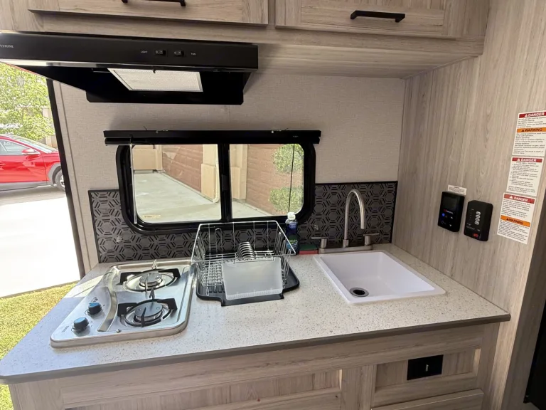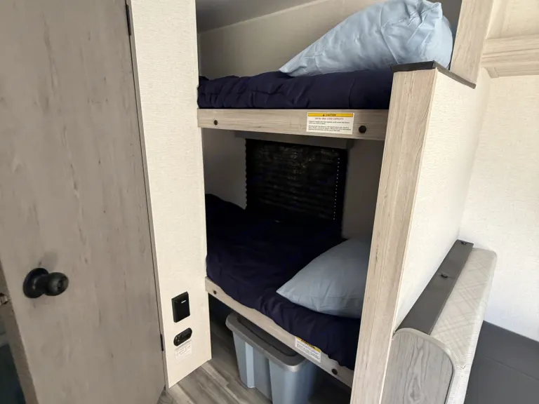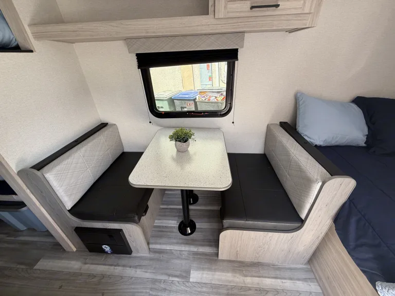 We have this beautiful-brand new travel trailer for you to rent. She is super spacious and ready to hit the road. She has literally everything you need on wheels! Our RV includes bedding, pillows, toilet paper, tooth paste, plates, bowls, utensils, napkins, pots and pans, coffee pot, foil, towels, coloring books and games for the kids, outside chairs, and much more! Please message us with any questions you may have. If you love camping or are a first timer, we are determined to make sure you have the best time ever.