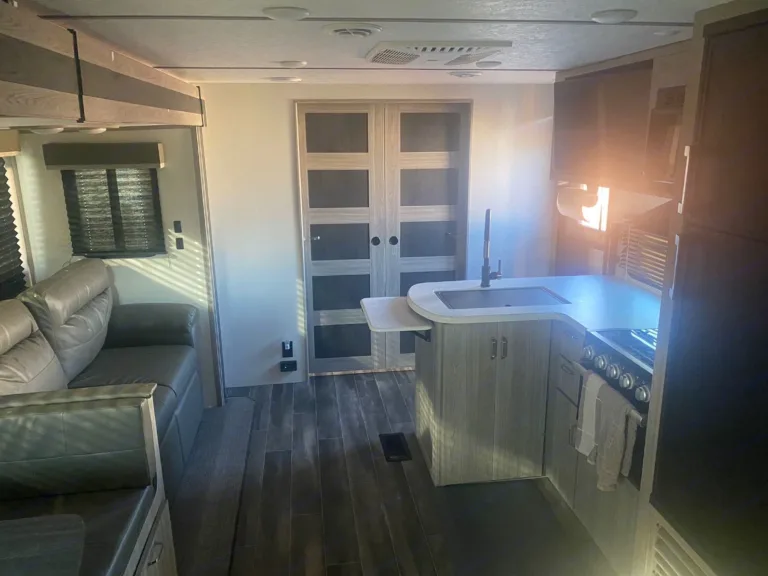 Our trailer is perfect for going on a trip with your family or as a couple! Our trailer sleeps 10. It has double wide bunks for the kids and a private master suite with a queen size bed and your own TV in the room. There is a couch to relax on and a dining table for a nice dinner. The dinette turns into a bed. Our trailer is truly our home away from home! There is one slide out which makes it huge in there. There is an outdoor fridge and stove. The pantry is huge and the bathroom is definitely big enough to move around in. There is a TV in the kitchen on a swivel mount. The trailer has solar with two batteries but we Highly recommend the generator if you will not be hooked up to an outlet. We ask that you do not bring pets into our trailer as our son is very allergic to animals.Drop off time to you is 4:00PM.