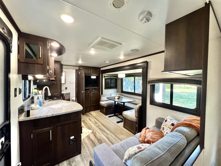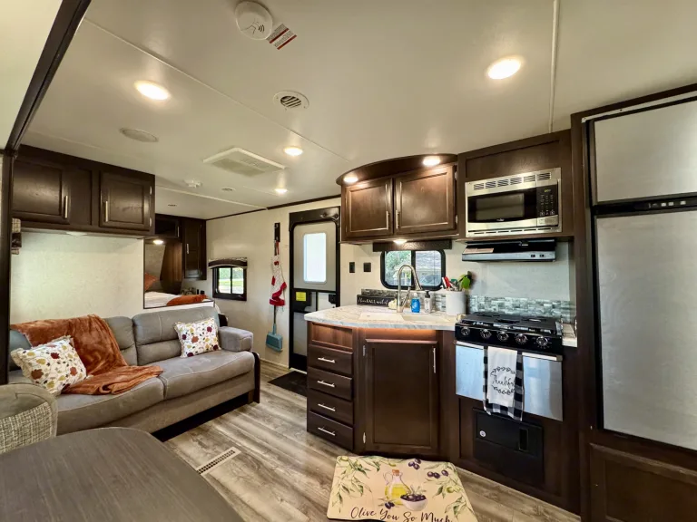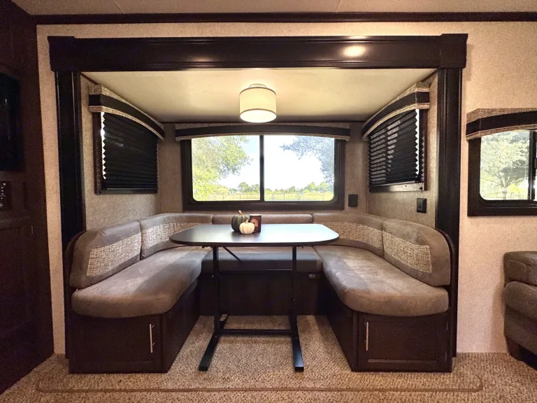 This 24 foot RV is the perfect travel companion. Includes a comfy queen bed fold out sofa and dinette conversion for sleeping arrangements.