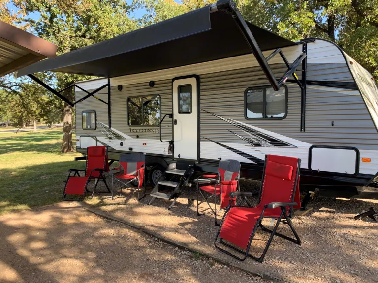 This RV is perfect for your next family adventure! It sleeps up to 8 giving you room for the whole crew! It's a 2021 Heartland Trail Runner that provides the full package, including A/C, heat, full kitchen, dining booth, full indoor bathroom, outdoor shower, stereo with indoor and outdoor speakers, double bunks, queen size bed, sofa bed, dining booth bed, and plenty of storage. What's includedWe include linens for the queen bed and bunks.