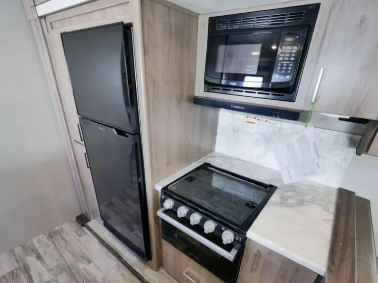 - Fully Equipped Kitchen: Whip up delicious meals in the fully equipped kitchen featuring a large refrigerator, stove, oven, and microwave. Enjoy dining at the stylish dinette or outside under the stars!
