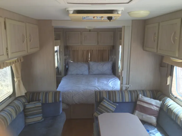 Very comfy van with lots of room. Sleeps two with under bed storage and a great reverse cycle air conditioner. There is a near new full annex and a simple pull out out annex depending on what you need