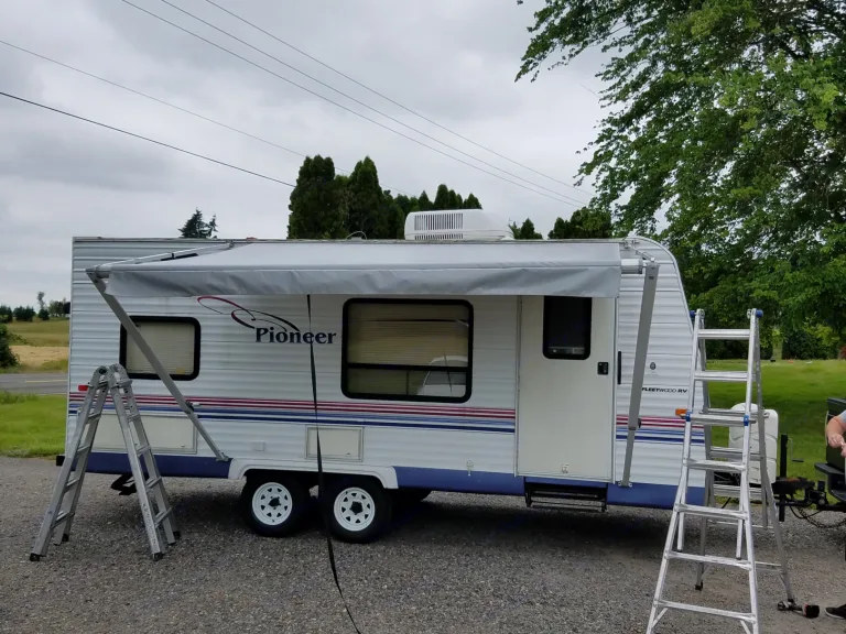 very clean , new tires , new awning , dishes , bedding included ,silverware ,coffee pot