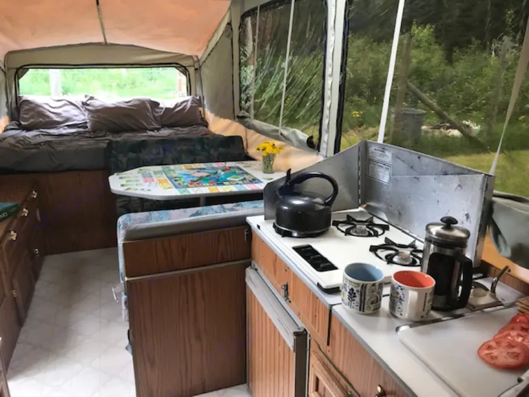 Poppy, as we so lovingly call her, is a cute, convenient home away from home. With a queen, double and convertible table top bed she can easily sleep up to six campers. Poppy has a three burner stove for those unexpected Alaska rainy days and a refrigerator to keep your drinks nice and cold. She recently received a full makeover with new canvas and a leak inspection. It's like she's ten years old again. Refreshed and reliable, Poppy is ready to hit the open road with you on your next adventure. We offer delivery and setup/breakdown for your convenience. Although, she has a sink, this is a dry trailer and the sink must not be used. *linens shown in pictures not included. This is a NO Smoking rental (cigarettes or weed), any sign or smell of this will result in a loss of your deposit. Additionally, no cleaning fish or game inside of rental. Any sign or smell of this will also result in a loss of your deposit.