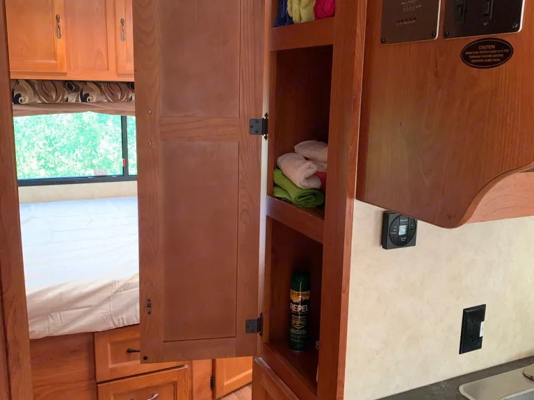 It is credibly comfy and cozy 28 foot RV. Can sleep 6 people and has 9 seat belts. Clean, smoke free and the perfect floor design. This rig is a great size for those smaller camp sites as well.What's includedFresh linens, towels, toilet paper, pans, a pot, a tea kettle, spatula, can opener, lighter, plastic silverware, paper plates and paper bowls all are provided. Comes with four sleeping bags, a queen size bed with sheets, a blanket and two pillows.