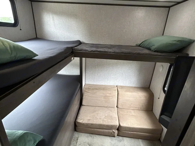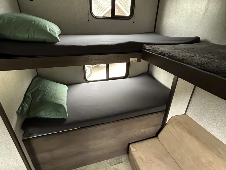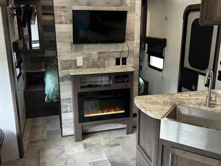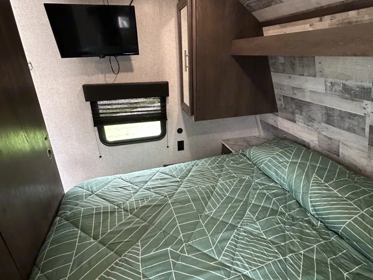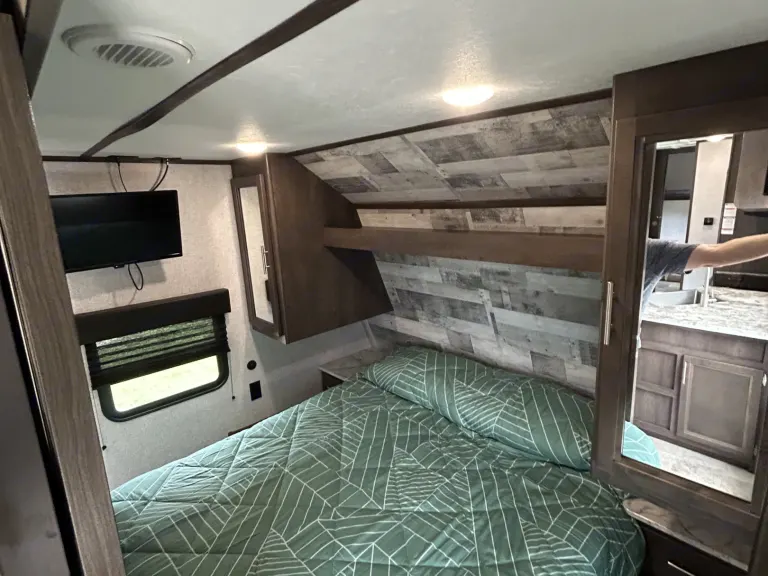Create Lasting Memories With Our Travel TrailerImagine waking up to the sound of birds chirping, stepping outside with a fresh cup of coffee, and taking in the beauty of the great outdoors—without sacrificing comfort. Our travel trailer is designed to give you the perfect balance of adventure and relaxation.Inside, you’ll find all the comforts of home: cozy sleeping spaces, a fully equipped kitchen to cook your favorite meals, and a welcoming living area where you can gather for games or a movie after a day of exploring. Thoughtful touches throughout the trailer make your stay easy and enjoyable, so all you need to bring are your clothes, food, and a sense of adventure.Whether you’re setting up at a lakeside campground, exploring national parks, or enjoying a weekend getaway with family and friends, our travel trailer is your home away from home. From roasting marshmallows around the campfire to watching sunsets from your campsite, this is where unforgettable memories are made.Let us take care of the details so you can focus on what matters most—relaxing, exploring, and making memories that will last a lifetime.What's included• Bedding for Queen Size Mattress