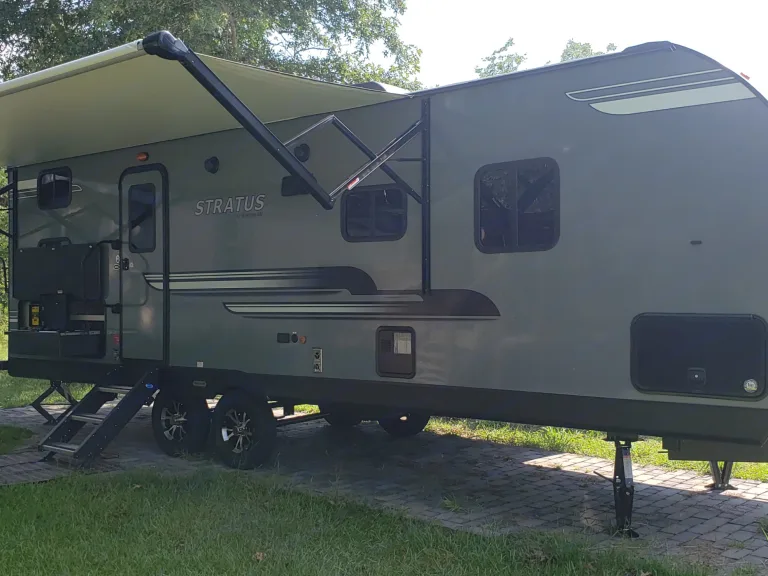 2021 Camper, sleeps 8 . Electric fireplace for cooler weather camping.What's includedIncludes everything needed for a nice camping experience, all kitchen utensils i.e.: silverware, pots and pans, dishes for 8, all towels and wash rags for kitchen and self. LiOther things to noteWould like it to be cleaned before when rental is over, please place all dirty linens on the shower. Thank you