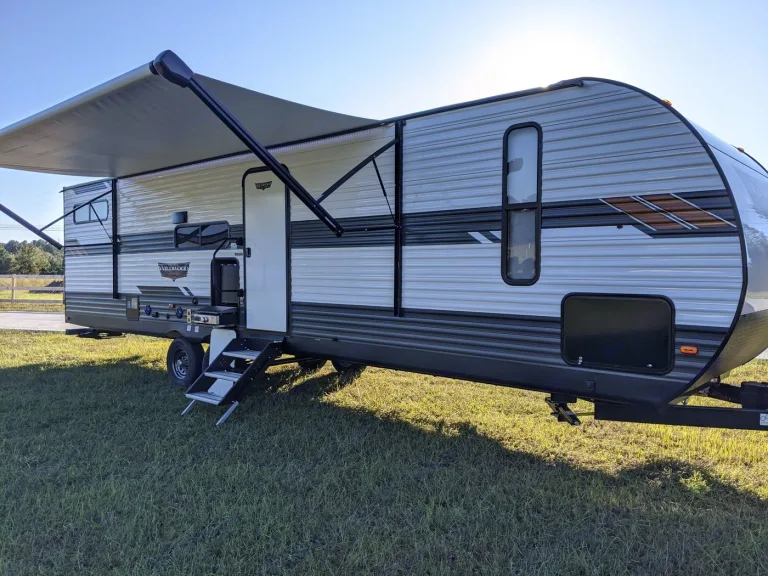 Enjoy a new adventure with family and friends in our brand new Wildwood travel trailer! Open living space with Plenty of sleeping room - up to 10! Both the dinette and the sofa open into beds, while the bunk house has 2 bunks (bed rails available) and a queen sized bed below. Great for a second family (or the in-laws). The master bedroom has a full length queen-sized bed as well. Fresh sheets provided for the 2 queen sized beds. Smart TV, Bluetooth stereo, and fireplace add to the at-home family experience. Bathroom has shower, with bath towels for 4, and RV toilet paper provided. 4 camp chairs, 2 large outdoor mats, outdoor gas cooktop grill and refrigerator, along with the outdoor speakers will keep you entertained well into the night. Kitchen is stocked with a Keurig, cookware, utensils, paper goods and cleaning items.Deliver and setup within a 30 miles of Adel for $100. Additional fees will be charged outside of first 30 miles. Setup and take down includes dropping camper off at your designated site, making sure it is level and everything is all set to go for your trip, as well as emptying all of the tanks at the end of your trip.***Delivery required to rent***What's included4x camping chairs