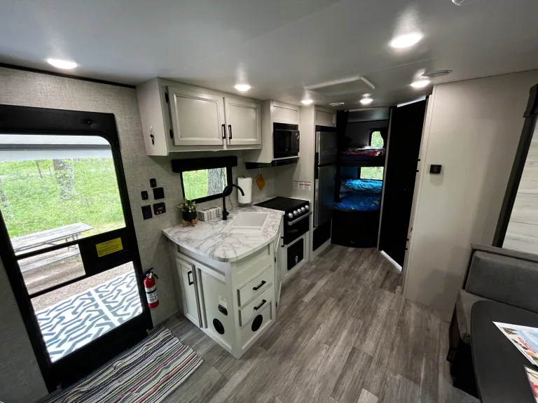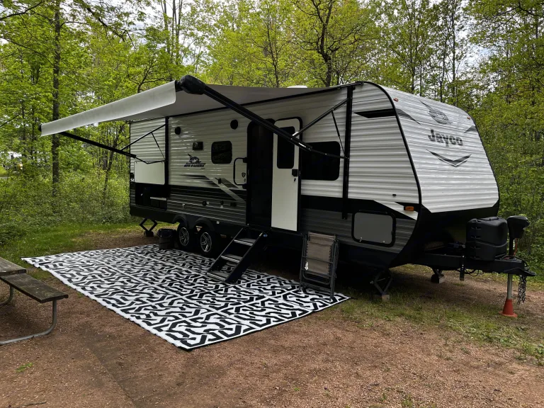 Perfect for family getaways, our camper will sleep up to 6. Comes fully stocked with everything you need to enjoy a long weekend or more!200w solar panels mounted on the roof for off grid power. This will run lights and the fridge and heat, but not the A/C or coffee maker. Add on a generator rental to get full functionality off grid.There is a queen bed, two full bunks and a fold down table. Full bathroom with a spacious shower.What's includedClean bedding, the beds are made up except for the fold down table.Towels for the bathroom and kitchenCoffee maker and suppliesKitchen supplies and basic seasonings.32” tv with HDMI input and DVD player4 camp chairs - 2 adult size and 3 kid sizeAll you need to bring are your drinks, food, clothes and any extra chairs you need! RecommendationsPerfect for a long weekend away with the family. Renters have used our camper for reunions and events on private property as well as the traditional campground experience!Looking for a camper rental for Wells State Park or Bewabic State Park? We are officially permitted by the Michigan Department of Resources to provide delivery to those campgrounds!Other things to noteNo extra cleaning or dumping fees. Pets allowed, but please clean up any messes immediately.No smoking!
