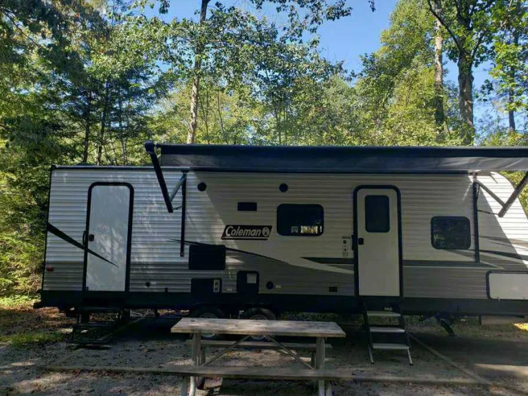 2021 Coleman Lantern camper. Sleeps up to 8 people. Queen size bed in the bedroom with a 3 inch memory foam mattress topper, full size bunk beds, pull out couch to a bed, and the table also turns into a bed. Super nice kitchen. Also has a beautiful fireplace and a large slide out. Includes everything you need- cookware, dishes, utensils, linens, blankets (We do not include pillows). We also have cornhole boards and a propane griddle that you can request at no extra charge. We are close to popular vacation areas such as Asheville and Cherokee. We deliver up to 25 miles for a $150 delivery and set up fee. Thank you for considering our camper. Happy Camping! What's includedDishes, pots, pans, utensils, coffee maker, fresh linens, towels, TV, DVD player, cornhole boards, propane griddle. All at no extra charge. Other things to noteNo pets allowed. No smoking allowed. Delivery only. Delivery fee is required.