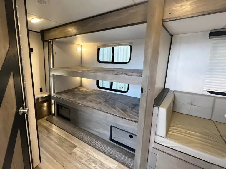 Welcome to Wynonna!!This very unique floorplan offers comfortable sleeping for 6!The kitchen counterspace is amazing with so much storage in the up cabinets plus a large pantry behind the tv!!The bunkroom is so versatile with its options to close off the extra bedroom or choose to leave wide open!! What's included• What's included: