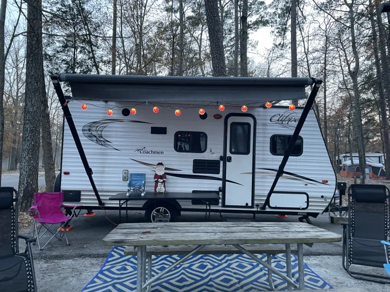Available for booking is our Coachmen Clipper travel trailer. It comes with a 2 burner stove, a microwave, a shower and tub, tankless water heater, heat and A/C, A queen bed, bunk beds, and dining table that converts into a bed, a t.v, board games and an automatic awning as well! We only offer pick up and drop off as well, to make the experience as easy as possible. We look forward to your booking!Feel free to ask about our favorite campgrounds & sites if you are a new camper! We can also show set up/break down if you would like to learn!Other things to notePets welcome!