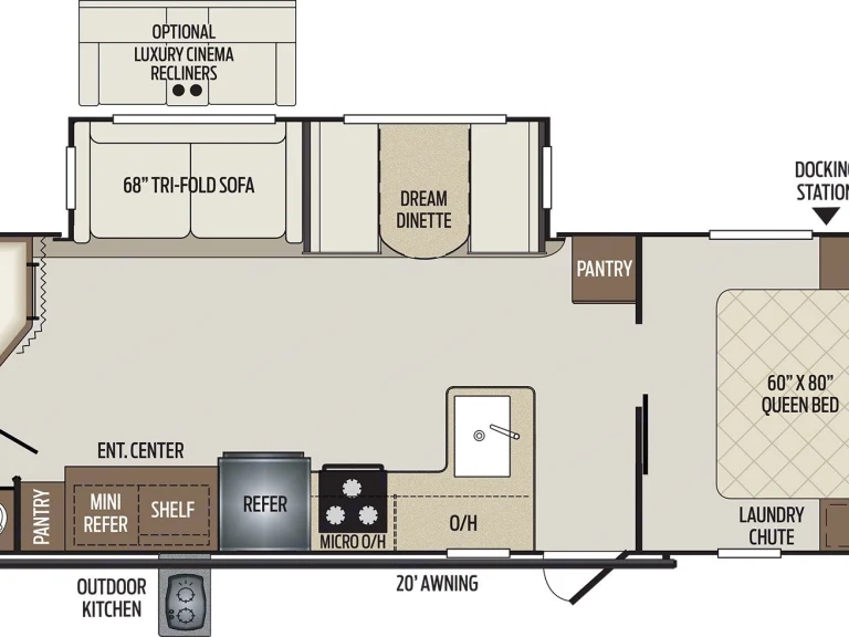 The perfect family recreation vehicle. Brand new. Sleeps up to 8. Great option for those who travel with large families or like to host big weekend parties. With the addition of the large slide, you will have plenty of room indoors to get together for a movie night with the 32" LED TV, and the outdoor kitchen will be perfect for hosting summer barbecues.- Black and grey tanks must be returned empty with hoses washed and stowed away. ($100 fee)• Propane tank must be returned full. ($80 fee)• Please refrain from smoking/vaping in the RV to avoid loss of security deposit.