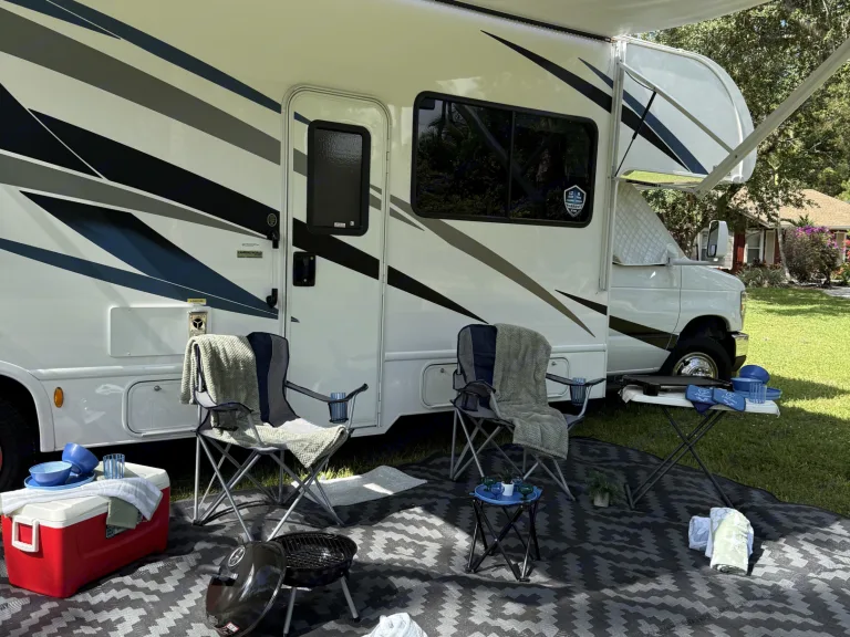 The Adventure Begins Here! Rent the fully furnished RV 2024 Thor Motor Chateau 31EVReady to make your vacation an unforgettable experience? With the Thor Motor Chateau 31EV, your trip will be pure pleasure:- Ample Space: Capacity for 8 people, perfect for families and friends. Large bedroom with a queen-size bed promising a restful and rejuvenating night’s sleep with a wardrobe closet. The booth dinette is not only great for enjoying your meals and playing card games, but also transforming it into an extra sleeping space for two. As well as a sofa bed that converts into a single bed.- Cooking on Board: Enjoy the comfort of cooking on the road. Fully equipped kitchen, complete with modern appliances for preparing delicious meals or enjoying local takeout.- Private Bathroom: Your own shelter to relax during the trip. A unique bathroom with skylight above and flexible hose with the shower head, plus an outside shower to keep the sand outdoor.- Connection and Entertainment:** Flat screen and Bluetooth so you never lack fun.-Equipped for the Adventure: With awning and outdoor space, ready to explore.It's not just a trip, it's an experience! Book now and start creating memories that will last a lifetime. The road is waiting for you!What's includedOutdoor carpet, 6 beach chairs, camping table, cooler, grill as well as electrical stove for outdoor cooking to maximize your experience. Fresh lines for all six beds and 10 towels, hand towels and wash clothes. Body wash, shampoo, conditioner, toothpaste, detergent, softener, cleaning supplies, salt, pepper, coffee, sugar, toilet paper, paper towels, trash bags, and emergency kit to keep the family safe.