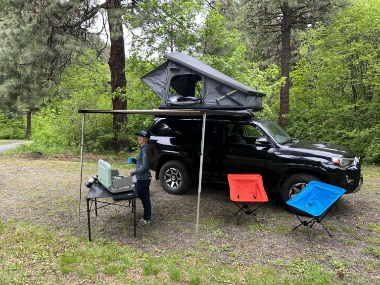 Welcome to Cascadia Overlander. We are currently offering a 2022 Toyota 4Runner TRD Off-Road for rent at an introductory rate of 169$ per night. We are a small overland/van company based in Wenatchee Washington. Currently we have this new 4Runner to rent with a van coming later this summer. The Toyota 4Runner is completely capable and is an overland/camping rig set up with a brand new Eezi-AWN Stealth roof top tent along with a brand new Eezi-AWN Swift Awning. This rig can go almost anywhere you want to get too. The rig comes equipped with all of your bedding and other camping essentials. All you need to bring are your clothes and food and your set for the next great adventure. If you ever wanted to know what overlanding is all about, this is the rig to rent. The Toyota 4Runner TRD Off-Road is equipped with leather interior, touch-screen with apple carplay and all the comforts and safety features that come with a Toyota Vehicle. The Eezi-AWN Stealth roof top tent sleeps 2-3 adults or 2 adults and kids. Other camping gear can be provided to sleep additional adults. Good for Gorge Concerts, Camping in the Methow or in Leavenworth. What's included2-4 camping chairs, camping table, ice chest, cookware, utensils, camp stove, fresh linens/pillows/blankets, water jugs. Free pick up from Wenatchee Pangborn Airport