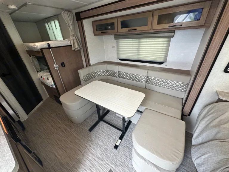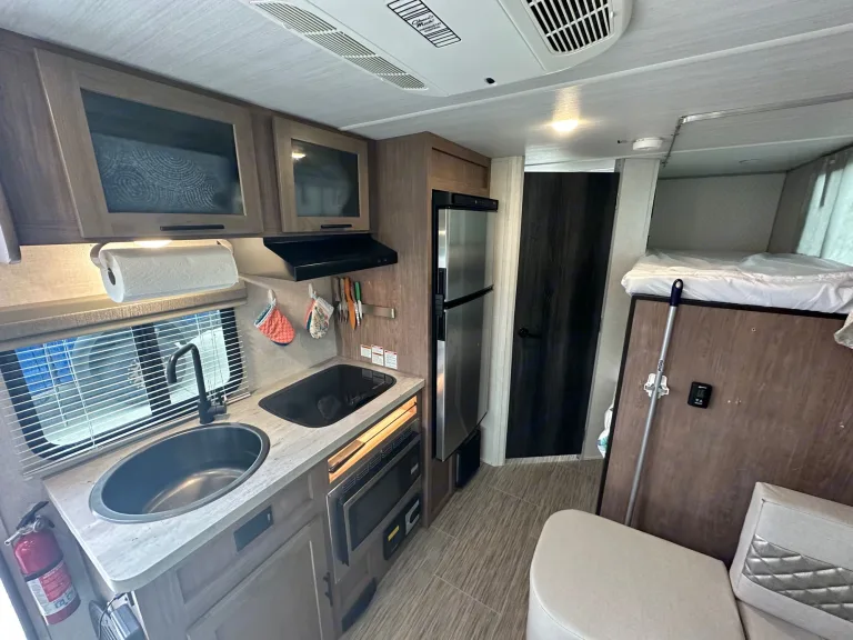 Looking for an adventure-filled getaway? Look no further than this 2021 No Boundaries 19.8 trailer, available for rent on Outdoorsy!This line-new trailer is the perfect companion for your next outdoor excursion. With a spacious interior and all the modern amenities you need to feel at home on the road, you'll have everything you need to make your trip comfortable and memorable.The trailer can sleep up to 5 people, with a comfortable queen-size bed, a convertible dinette, and 2 twin size bunk beds. The kitchen is fully equipped with a refrigerator, microwave/convection oven, stove, and sink, so you can prepare delicious meals on the go. The bathroom features a toilet, shower, and sink, providing you with all the comforts of home even in the great outdoors.The No Boundaries 19.8 is also packed with features to make your outdoor experience even more enjoyable. The trailer also has an electric awning, outdoor lighting, and outside TV hookups.This trailer is lightweight and easy to tow, making it perfect for weekend getaways or extended road trips. It's equipped with a 380W of solar panels, 100AH lithium batter, and a 1000W inverter. Perfect for boon docking.Don't miss your chance to rent this incredible trailer and experience the great outdoors like never before. Book your reservation on Outdoorsy today!What's includedPots, Pans, Linens for Queen Bed (you will need to bring a blanket), Utensils, cups, plates, outside griddle, Toilet Paper, Bluetooth speaker, Kcup coffee maker.RecommendationsThe camper is set up to run off grid (other than the A/C and microwave).Other things to note-Absolutely NO SMOKING in this camper.