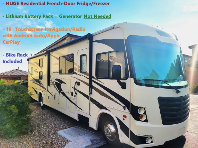 This 33'11" FR3 is one of the best floorplans with two spacious slides, tons of seating and beds!. It features a large King bed, Bunk bed, and a Double size fridge/freezer to load up all the food and drinks you could need! (**Please see experience requirement below**)I had a plumber add a separate drinking water tank that holds 7 gallons of Reverse Osmosis water, with it's own spout at the kitchen sink so you don't have to worry about cases of water taking up space.An upgraded 5-function "pressure boost" shower head has been installed, along with a motion sense bathroom faucet to help conserve water when dry camping.**Experience Requirement:** (If in doubt, please check with me. I am reasonable and friendly, just want to make sure our RV is in good hands). I am happy that my RV can be available for others to make memories with. Please note, that this is my family getaway RV and not part of a business fleet. If it is damaged or mistreated, then it could ruin the plans of both my family and other renters that have scheduled an exciting vacation after. My hope and expectation is that it is treated with care. In consideration of that, I will only rent out the RV to those that I feel have sufficient experience and have responsible plans for the RV. In your request, I kindly ask that you introduce your group, your experience in driving large (~34') vehicles, and the general plans of your trip. What's includedI include:- 7 gallons of premium Reverse Osmosis drinking water integrated into the plumbing with it's own dispenser at the kitchen sink! No need to bring cases or large bottles of water.