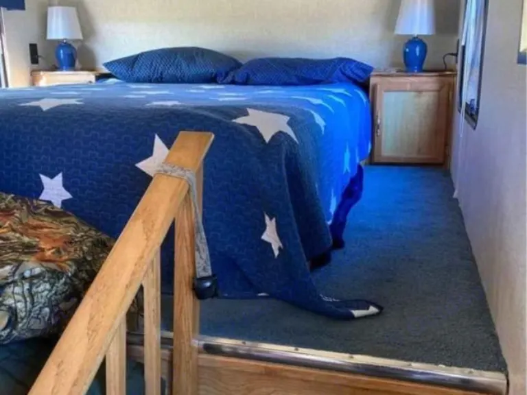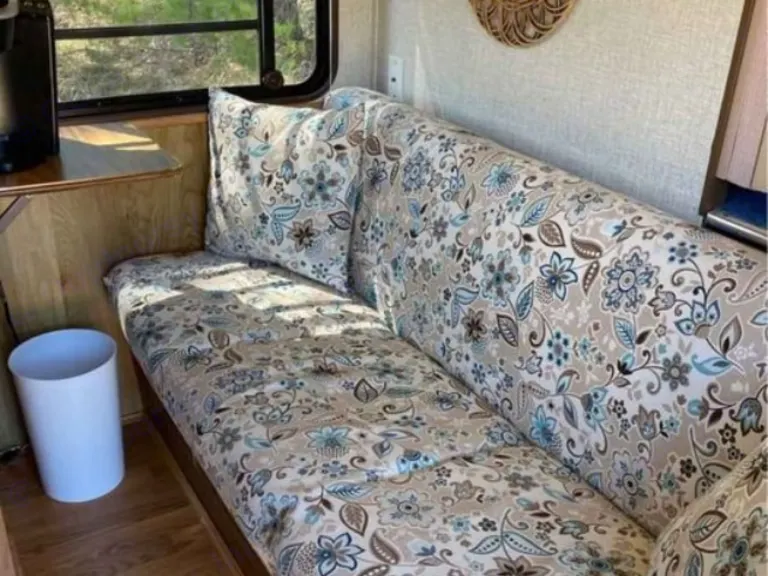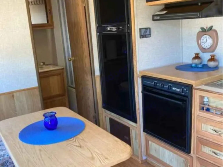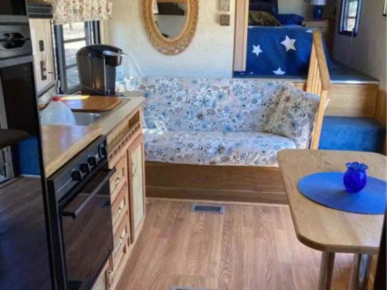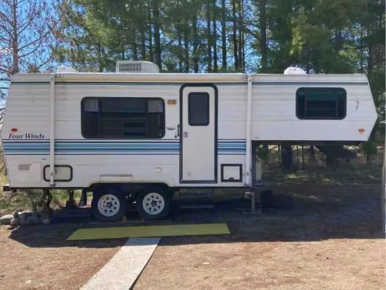 This 1994 Four Winds fifth wheel is a tried and true camper. No slides makes is a cozy place to sleep and store your stuff. Kitchen, rest room with shower, queen bed in cozy bunk room, a couch pull out bed for a second sleeping area. All the cozy comforts you need to enjoy your camping adventure.