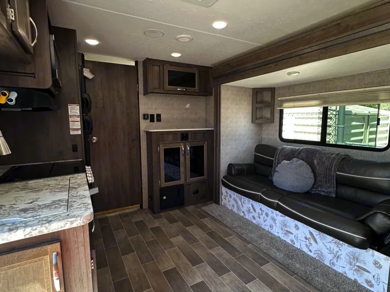 Ready to hit the road? Our beautiful and easy-to-tow 24' travel trailer is the perfect home base for your next getaway. Whether you’re a couple chasing sunsets or a small family seeking some unplugged time together, this space is designed for comfort, convenience, and connection.Inside, you’ll find a cozy layout featuring:A queen-sized bed with soft linens and built-in storageA convertible couch that doubles as a dining space and folds down into a second bedA full bathroom with a tub — perfect for washing off a day of fun or giving little ones a proper bathA fully equipped kitchen with all the cookware, utensils, and paper products you needOutside, enjoy:Outdoor shower for rinsing off after hikes or beach daysComfy camp chairs and outdoor games to soak up the fresh airPlenty of space for your furry companions — we happily welcome pets!We’ve thought of all the extras so you don’t have to: towels, bedding, paper goods, cookware, and even a few favorite games for rainy days or relaxed evenings.This trailer sleeps up to 3 and is ideal for weekend escapes, long road trips, or peaceful campground stays. Just bring your clothes and sense of adventure — we’ll handle the rest.Let this trailer be the backdrop for your best memories yet.