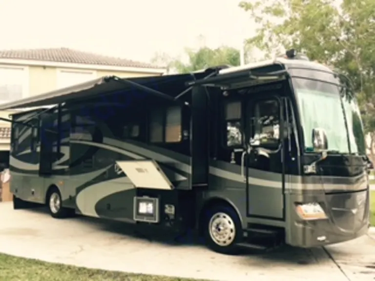 41 Foot Fleetwood Discovery . This is a 4 slide diesel pusher. It has the option for in motion direct tv satellite. It can sleep 6-8 people.