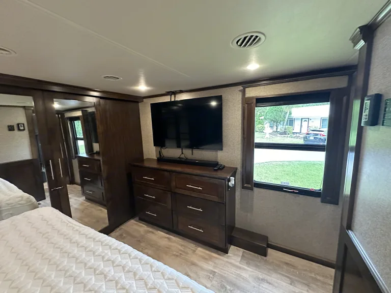 Beautiful 5th wheel great for Couples or Family of 4. Tons of storage space. King Size Purple Mattress. Queen size sofa bed with memory foam. Washer/Dryer setup. Great for extended stays . Filtered water. Gas/Electric water heater. Large kitchen sink and Island. Enjoy traveling around in comfort. What's includedBike Rack for 2 bikes, smokeless Fire pit, linens for linens for the beds included. RecommendationsBring your own plates, utensils, towels, and camping chairs. If you want to wash clothes bring tide pods.