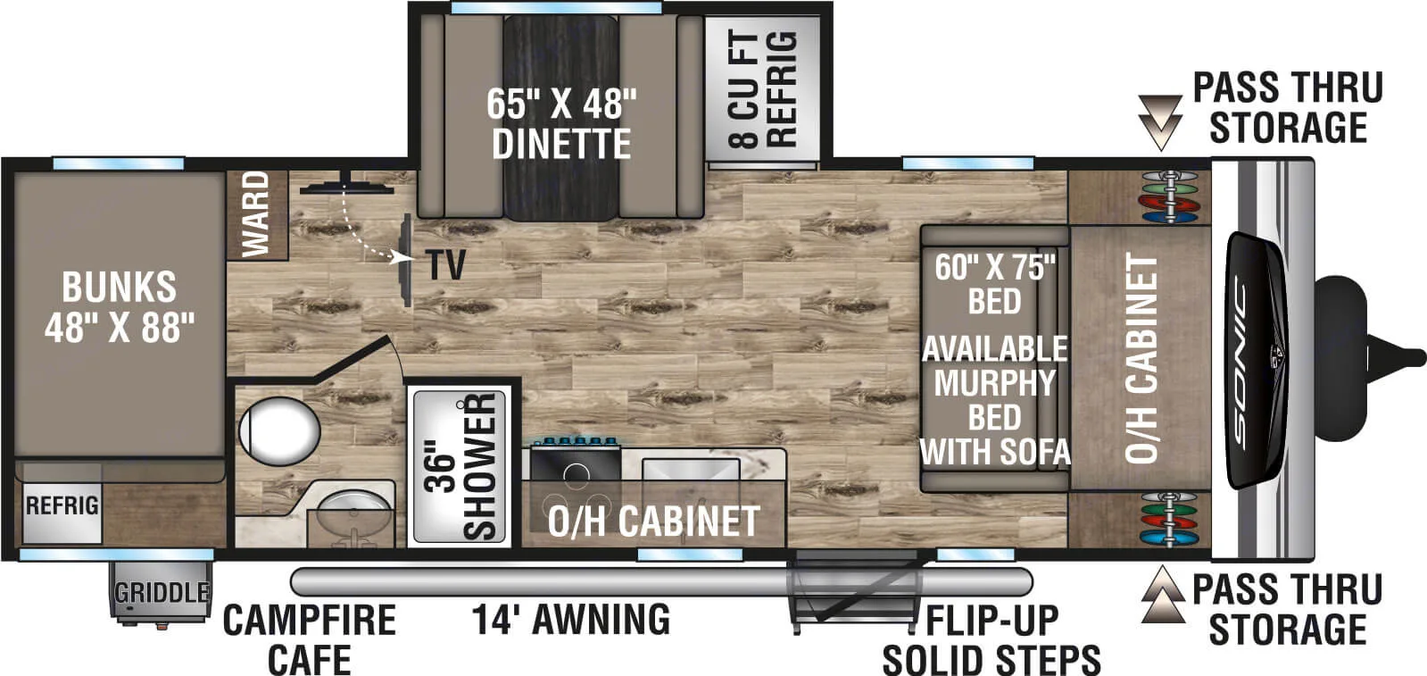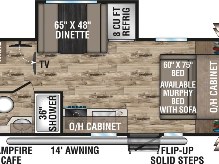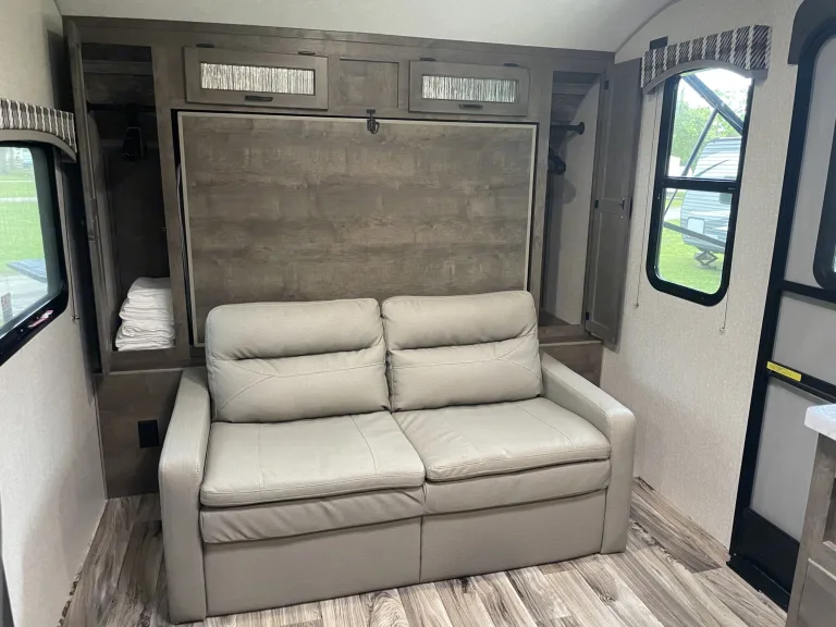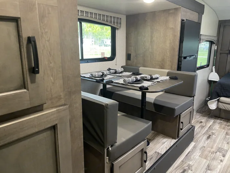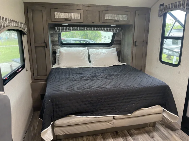 Awning or canopy for shade and protection from the elements.RecommendationsFamiliarize Yourself: We will walk you through everything and help you become familiar with the RV's features and operations. Review the user manual and ask any questions before hitting the road.Plan Ahead: Plan your itinerary and make campground reservations in advance, especially during peak seasons, to ensure availability.Pack Essentials: Pack personal items such as clothing, toiletries, and any specific items you may need for your trip. Consider bringing along groceries, cooking supplies, and any specialty items you prefer.Follow Safety Guidelines: Adhere to all safety guidelines and regulations while operating the RV. This includes wearing seatbelts, observing speed limits, and practicing proper RV handling techniques.Keep It Clean: Treat the RV as if it were your own. Clean up after yourself and maintain cleanliness throughout your stay. This includes tidying up the interior, wiping down surfaces, and disposing of trash properly.Be Mindful of Weight: Be conscious of weight restrictions and ensure that you do not overload the RV. Distribute weight evenly to maintain stability and avoid potential damage.Conserve Resources: Practice responsible resource usage by conserving water and electricity. Be mindful of water usage during showers, dishwashing, and other activities. Use appliances and amenities efficiently to minimize energy consumption.Follow Campground Rules: Respect campground rules and regulations, including noise restrictions, campfire regulations, and pet policies. Be considerate of fellow campers and maintain a peaceful environment.Secure the RV: When leaving the RV unattended, ensure it is properly secured. Close and lock all doors and windows, retract the awning (if applicable), and take necessary precautions to prevent theft or damage.Communicate with the Owner: Stay in touch with the RV owner or contact person in case of any issues, questions, or emergencies that may arise during your rental period. They are there to assist you and ensure a smooth experience.Other things to noteNo Smoking: There is a strictly enforced no smoking policy inside the RV. This includes cigarettes, cigars, pipes, and any other form of smoking. There is a minimum $500 cleaning fee applies to RVs that have been smoked in. Smoking outside the RV should also be done in designated areas, ensuring proper disposal of cigarette butts.Occupancy Limit: The maximum number of occupants allowed in the RV is 8. Do not exceed this limit for safety and comfort reasons.Campground Regulations: Comply with all campground regulations, including quiet hours, speed limits, and waste disposal procedures. Be respectful towards other campers and adherence to any specific rules of the campground.Damage and Cleaning: The RV should be returned in the same clean and undamaged state as when it was rented. There will be a minimum $300 cleaning fee for excessive dirtiness or damage caused during the rental period.Prohibited Activities: DO NOT climb on the roof, use banned substances, or engage in disruptive behavior. Monetary penalties will be assessed for violating these rules.Care for RV Components: Treat all components of the RV with care. Remember to close windows and retract the awning when leaving the RV unattended.Driving and Towing: Please remember to follow safe and responsible driving. Follow all traffic laws and guidelines, and do not drive under the influence of alcohol or drugs.Communication: Please promptly report any issues, concerns, or accidents that occur during your stay.Compliance with Laws: Renters are expected to comply with all local, state, and federal laws during their rental period. This includes adhering to all vehicle registration, insurance, and licensing requirements.