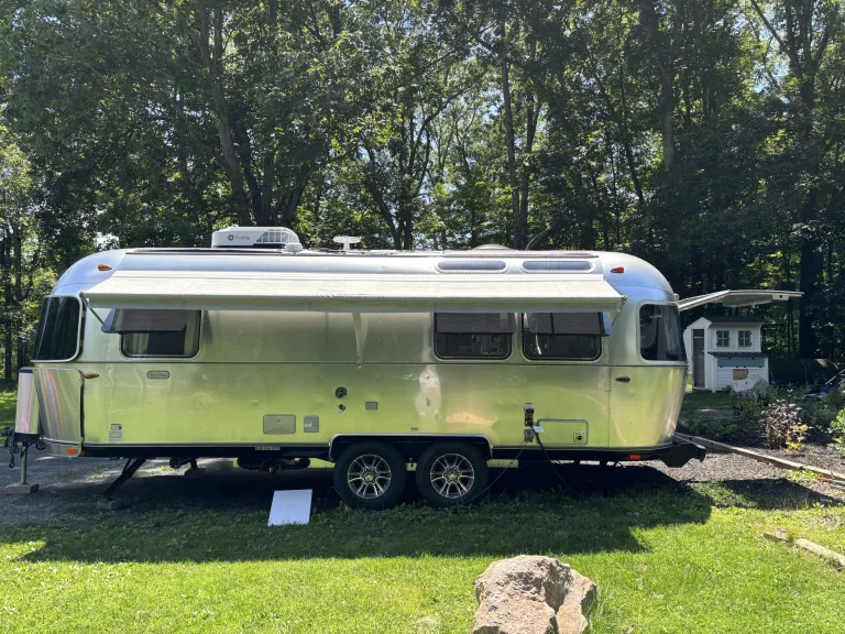 I’m obsessed with Airstreams! I grew up going on camping trips in converted vans and campers. So did my husband, Alasdair, only they called them caravans (he’s English). We love sharing our Airstreams. We have a 1969 Sovereign Land Yacht that we rent on our property and now we’ve added a 2025 Tradewind. We love animals and currently have 2 dogs, 2 cats, 3 chickens and 3 bee hives. Don’t worry none of them are allowed in the Airstreams!
