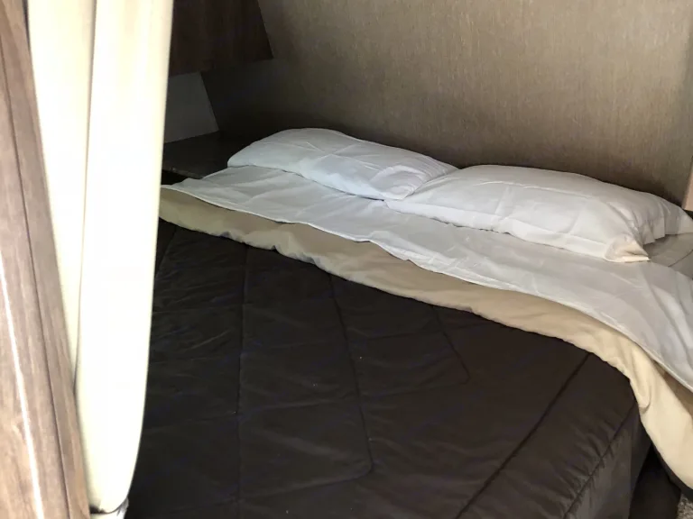 This trailer is perfect for your family it sleeps up to 10 people. 1 queen bed, two full beds (bunks) as well as the dining and couch both convert to beds. Upgraded queen mattress in the master. Two LED TVs, am/fm radio, CD/DVD player and indoor/outdoor speakers.
