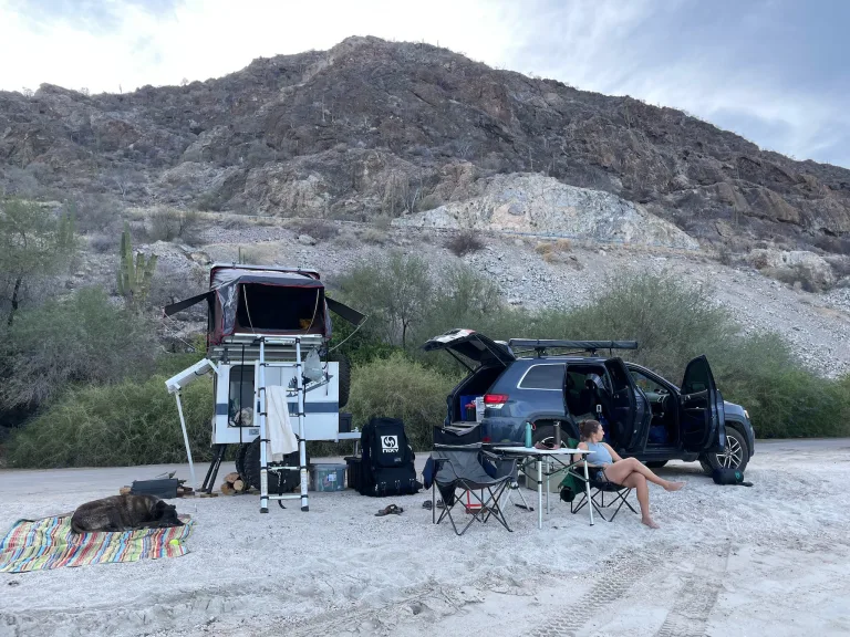 Mini overland camper trailer with iCamper rooftop tent. Easy to tow by any vehicle and camp anywhere your car can take it. Plenty of storage to bring all your gear.