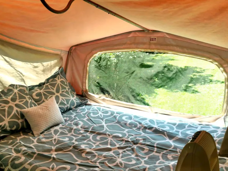 Simple design, lightweight, sleeps 6. This is a huge upgrade from a tent, expands to over 16 feet long when set up. 2 full sized beds fold out, and the dinette converts to another full sized bed. Easy to tow 8 foot long trailer. Simple amenities include, an icebox, fan, small TV with DVD player, a coffee pot and plenty of outlets to plug in your devices. See our add ons below for additional gear to make your trip more enjoyable. The camper will hook up to a regular extension cord or a 30amp. The propane stove can be used inside or outside. Setup only takes about 15 minutes. Expect to spend about an hour when you pick up, so we can show you how everything works and how to set it up and take it down.Weekday pickup is after 5:30pm.Covid19 update: During this time the RV will be sanitized prior to pick up. Please respect social distancing and wear a mask at the time of pickup while we show you around. If anyone in your party is feeling ill or has a fever please contact us to reschedule. We appreciate your understanding.