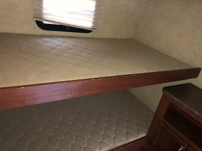 The Sun Valley S30BH travel trailer by EverGreen travel trailer offers a single slide and a u-dinette. Nearly finished remodel.As you enter the travel trailer to the right there is a front bedroom with a queen bed. You will find storage below the bed and wardrobes on either sideThe main living area has a slide with a sofa and a u-dinette. Next to the dinette there is a nice size pantry. The opposite side of the trailer has a large sink, three burner range, microwave, and refrigerator. In the front of the living area there is a swivel entertainment center with a 40” smart tv.The side aisle bath has a tub, sink, medicine cabinet, linen cabinet, and toilet.In the rear you will find the bunk house which offers a dinette and a bunk above it. Along the rear wall there is a TV and wardrobe. On the opposite side of the trailer there is aplenty of interior storage.Outside you will find a kitchen with refrigerator and a two burner grill.The large pass thru storage area allows for bringing all of your necessary camping items.