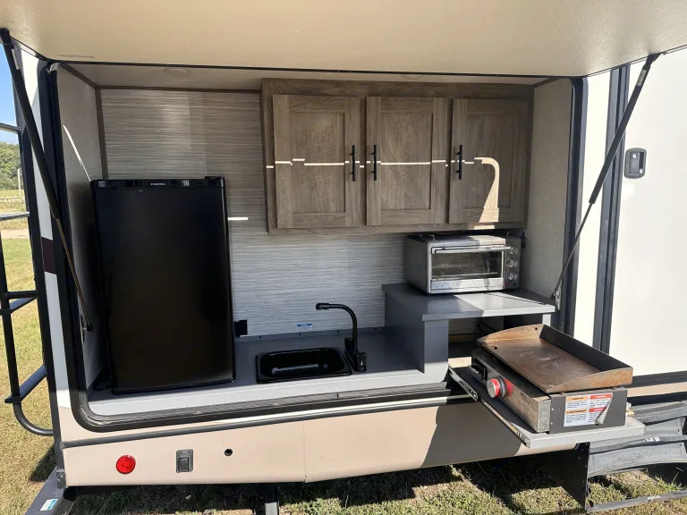 Outside kitchen features- Refrigerator,Sink,Griddle & cabinets