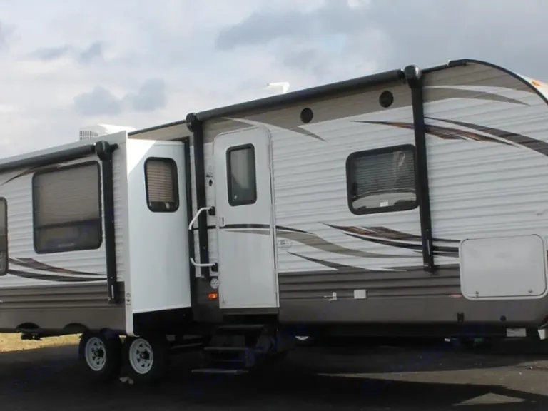 Our Wildwood 27 REI is a couples retreat!! It can sleep up to six, but we believe it is perfect for two. It has a wide open floor plan with a huge rear living room thanks to opposing slides. Our luxurious kitchen has a residential size fridge, three burner stove top with an oven, a single serve brew Kuerig and an Island with plenty of space. Topped off with a private bedroom and a full size bathroom, this travel trailer feels more like a one bedroom luxury apartment, and the good news is you can take it with you!!
