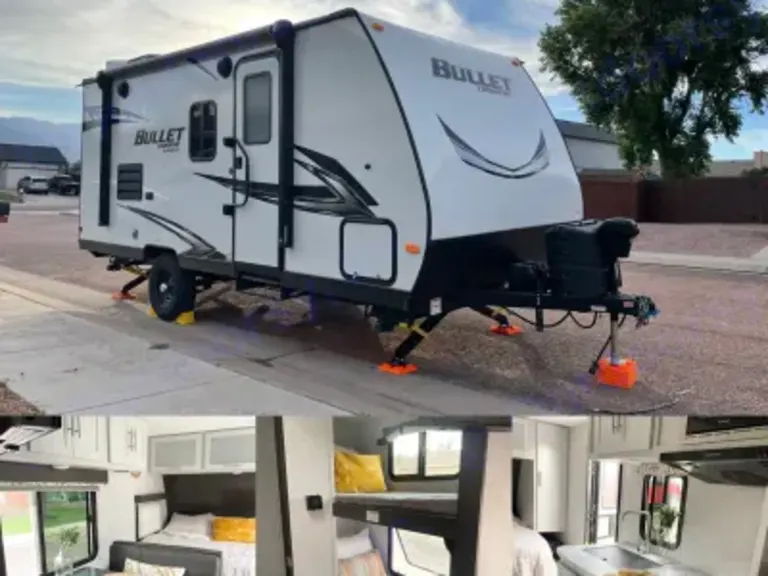 Our 2021 Keystone Bullet Travel Trailer is the perfect setup for a weekend getaway, family vacation, or even a perfect way to visit family. At 21ft, this camper is the perfect size for having enough space inside, but not limiting the ability to place it in a variety of locations. It can fit in a driveway, campsite, and can be towed by most mid to full size vehicles.Our camper is clean, maintained, and still has the "new camper" smell. It comes with a refrigerator, microwave, 2-burner gas stove. It has a full bathroom with shower, sink, toilet and cabinet space. There is also an outdoor shower to rinse your feet, etc. There is a queen size bed up front, two bunks in the back, and a convertible dining table. Linens will be provided for all sleeping areas & towels/ rags for bathing. There is storage under the dinette, under the queen bed, and cabinet space all around. Camper has AC, TV and we will provide board games for your entertainment. The dry weight, just the camper itself, of the camper is 3377 lbs. There are electric stabilization jacks as well as an electric hitch for connecting and disconnecting to vehicle. The awning is also electric and has LED lights built into it. Indoor & outdoor speakers. Any questions during your rental, you can reach out to me via here or my phone number.Wanna save $$? Let us know you are comfortable doing a self dispatch and we will remove the $75 prep fee. Generator is a $75 add on, as is the dump fee. Maverick and most campsites have dump stations for your use.Cancellations policy set at strict, please review before completing your rental, as refunds will not be given unless due to fault of our own. Thank you & Enjoy the season!!What's includedFresh linens, board games, dishes, etc Other things to noteNo smoking