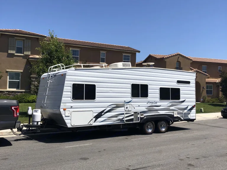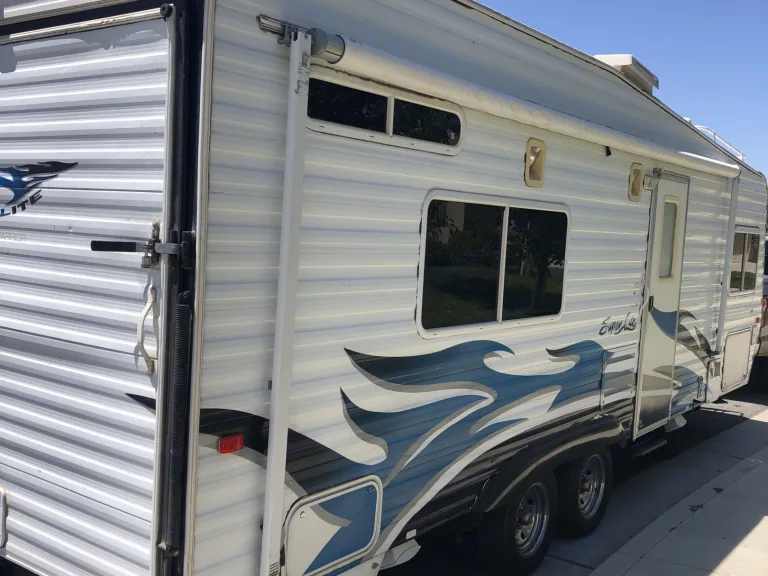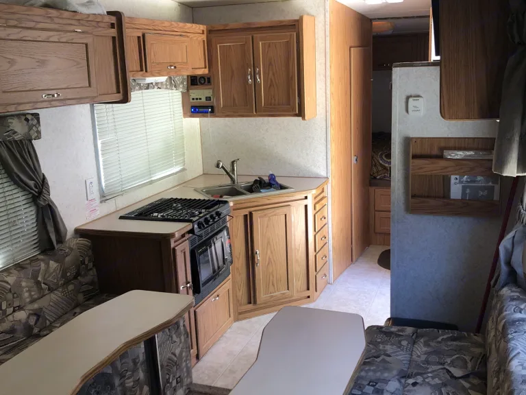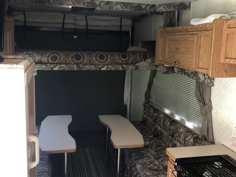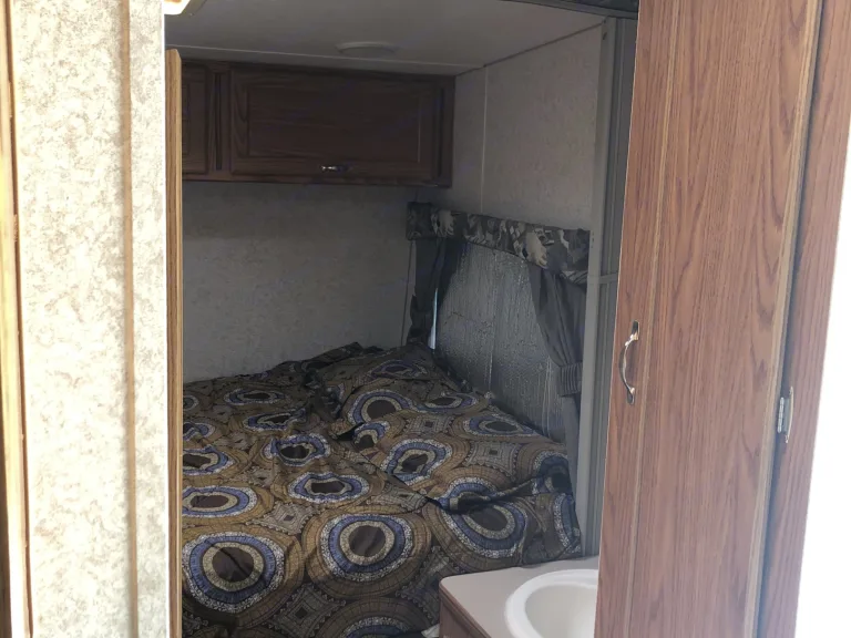 25ft weekend warrior. Has a front queen and pull down full size in rear, and dining that converts into sleeping as well. Sleeps 6 comfortably. Full kitchen, onboard generator, full bath, and is in good condition. 90gal fresh water capacity, 32” TV and DVD, new stereo with usb connection, indoor and outdoor speakers!Storage space is 10ft long for quads, or side by side. Plus there is a couple feet in front between the fridge and oven