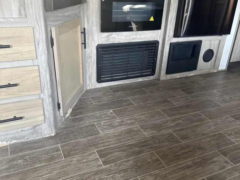 we have modern wood floor except dining room carpet. we have ice maker, mini refrigerator and one cooking top outside of the trailer. We will add the generator for small fee per day. We do have 32 inch TV and antenna.What's includedAll bedding are included the blankets are not included. Bath towels are not included. kitchen essentials like silverware, plates, tumblers cookware, coffeemaker, toaster etc. are included. you will need to bring your own camping chairs if you wish. RecommendationsOnly use RV toilet papers.There is moving out checklist.
