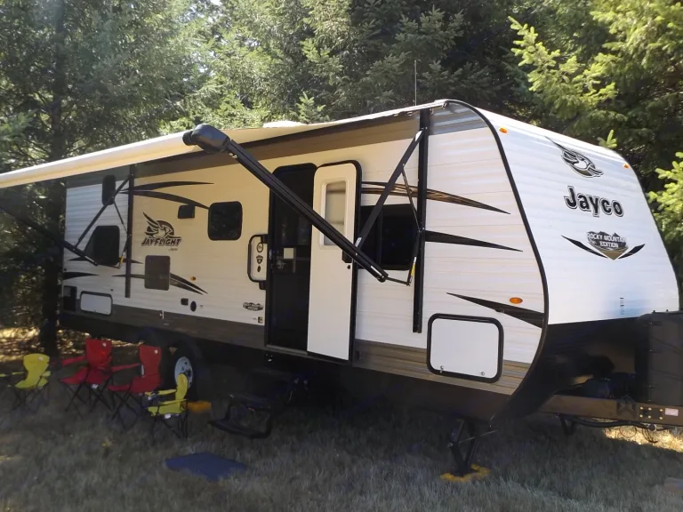 This is a 2018 Jayco JayFlight 2867Bhsw bunkhouse model with space for the whole family. Comes fully equipped with bedding for 4, cookware and dishes, 4 camp chairs, just add food and your family and go! An 80 gallon freshwater capacity, dual batteries, and dual 30lb propane tanks makes this rig perfect for off-hookup dry camping. Enjoy some of the comforts of home such as two wifi-enabled TVs to connect to your phone hotspot, stereo with Bluetooth and outdoor speakers, outdoor shower, BBQ, and a power tongue jack to take the work out of hookup (TVs will not work without power hookups or a generator).Master bedroom is up front with sliding doors to partition a quiet area when needed, two double bunks in the back are perfect for larger kids or double up the littles. The dinette and sofa fold down to create two additional sleeping areas. We include bedding for all the beds, if you intend to sleep folks in the dinette or sofa you will need to provide their bedding. Shower/tub combo is great for kids.If you are not booking with delivery and setup, final approval of the rental is contingent on our assessment of the tow vehicle setup and driver experience. This trailer is towable with a half-ton pickup or large SUV, as long as all parts of your tow vehicle system are rated to tow at least 6500 pounds. We include our weight-distributing hitch with your rental, requires a 2" receiver. You must have a trailer brake controller installed in the tow vehicle.