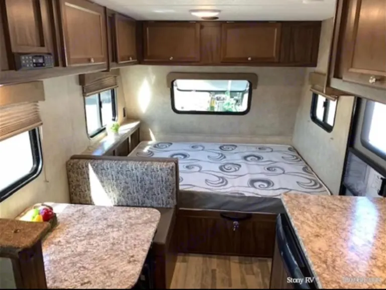 Coachmen Viking is the perfect size trailer to take on your get away. Sleeps 5 with bed and bunk house beds in it. Great for a family get away. Is light weight to tow at 3,800 lbs. 4 Stabilizers makes setup easy within 20 minutes. Everything you need just without the hassle of towing a full sized trailer. As you step inside you will see a double bed in front with storage at the head of the bed and overhead cabinetry as well. There is a convenient galley kitchen featuring 2 burner range, kitchen stink and a pantry for all of your dry goods. Plus some counter space that makes food prep easier. The kids will enjoy sleeping on the rear set of bunks. There is also a private toilet and shower for your convenience, and location is perfect for kids at night too.Power owning, Indoor/Outdoor speakers, outdoor shower, full bath, propane stove, fridge, bunk beds, queen bed, tv, cable/satellite hook-up, microwave, 4 stabilizers, a/c & heat. Perfect size for travel and making memories. What's included2x Camp chairs, camping table, rug, keurig coffee maker, Other things to noteNo Smoking