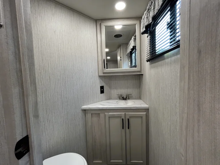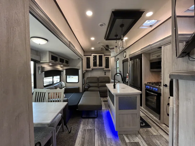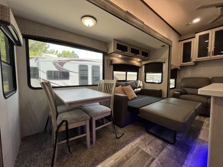 Take a look at this unit that you can go camping in with multiply families if you want. This unit brings every thing to the table you can imagine from a tremendous amount of space to entertain and more! Take a look at some of the great benefits below.• Sleeps 8+ (3 twin beds, 1 Queen bed, 2 Full beds from couches)