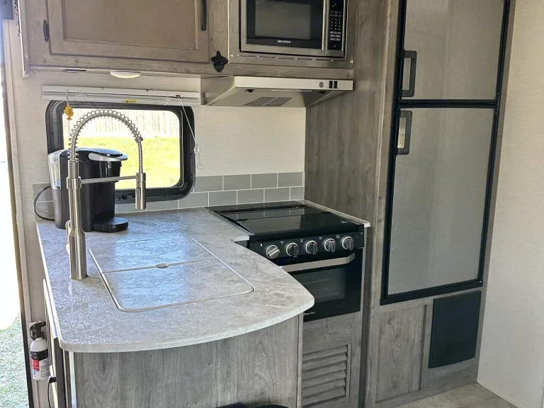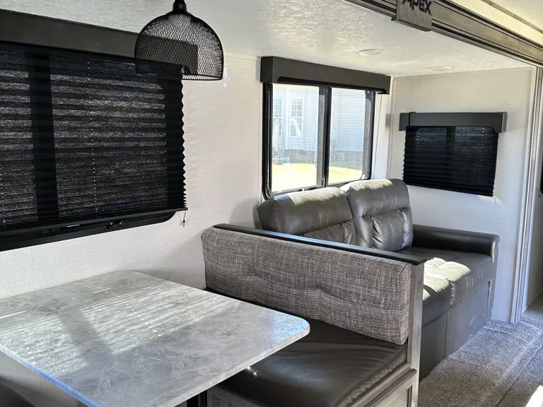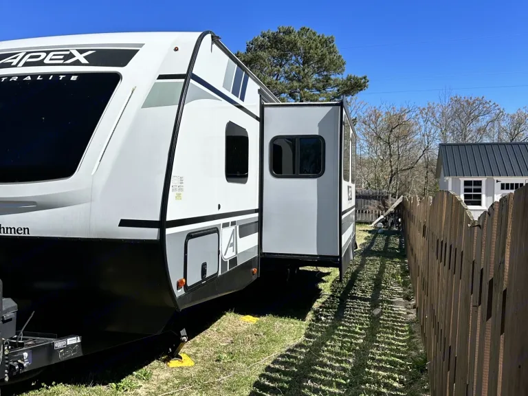 2021 Apex Travel Trailer! Perfect for all of your family's needs! It is equipped with a front queen sleeper and plenty of bedroom storage. It also has a bunk room in the rear of the trailer with 3 bunk beds and a couch that also converts to a bed! as well as its own tv and door for privacy! There is a gas stovetop and oven for all those yummy dishes! It also has an outdoor kitchen area complete with mini fridge and pull-out grill for you to enjoy! There is plenty of storage under the trailer for all of your outdoor equipment needs and a large LED lit awning perfect for those beautiful outdoor evenings. It has a complete bathroom with a tub/shower combo. Also equipped with a large slide in the living kitchen area to give you plenty of space to relax and enjoy as well as a large flat screen tv and sound system to play your favorite music both inside and outside of the trailer! So it is safe to say that you can truly enjoy what our Apex trailer has to offer for what are sure to be memories for a lifetime! We hope you can enjoy this family experience as much as we do! Cheers!