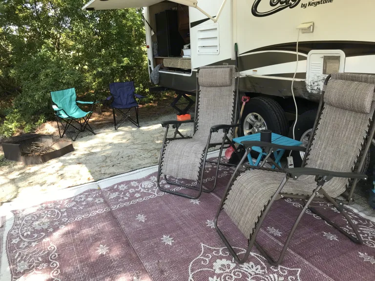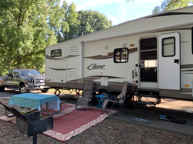 * When booking your campsite at your desired campground, please mention that you will require a site large enough to accommodate a 37-foot 5th wheel w/ 3 slides & no low hanging trees. (RV Dimensions: L 37.5’, W 8.42’, H 13.25’)