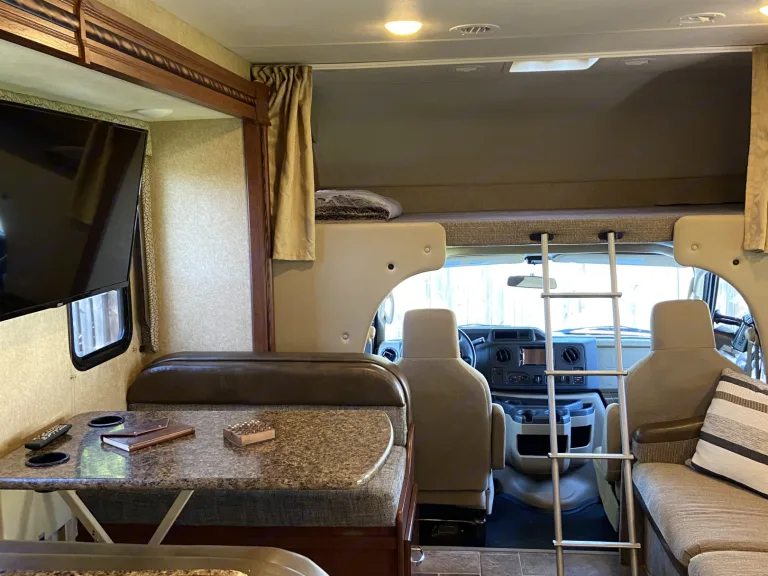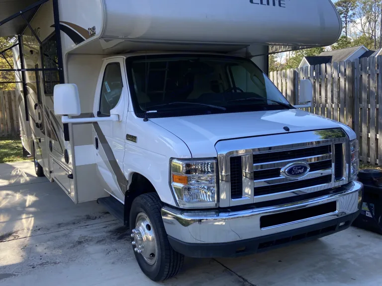 Travel with all the comfort and amenities of at A class motorhome, but not as intimidating. Enjoy this roomie C class that drives like a van. It has two slide outs and a built-in generator. Everything you need is automatic and at your fingertips. Enjoy camping at its finest both indoor and outdoor. Inside our coach sleeps six with a queen size bed in the master bedroom. It has a full bathroom including shower and everything you need in the kitchen. Along with flat screen TVs in the bedroom and living room. Hang out with your friends or enjoy a movie at night, just like at home!Or spend you time outside, our coach has an automatic awning with an outdoor kitchen for cooking and outdoor entertainment center. Sit back under the stars, around the fire and enjoy your evening.So if you’re looking for a trip close by in eastern North Carolina where you just want to have a coach set up at your destination or if you want to pick it up and drive it to California and back, check this coach out!