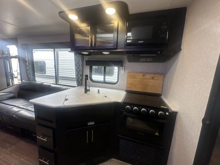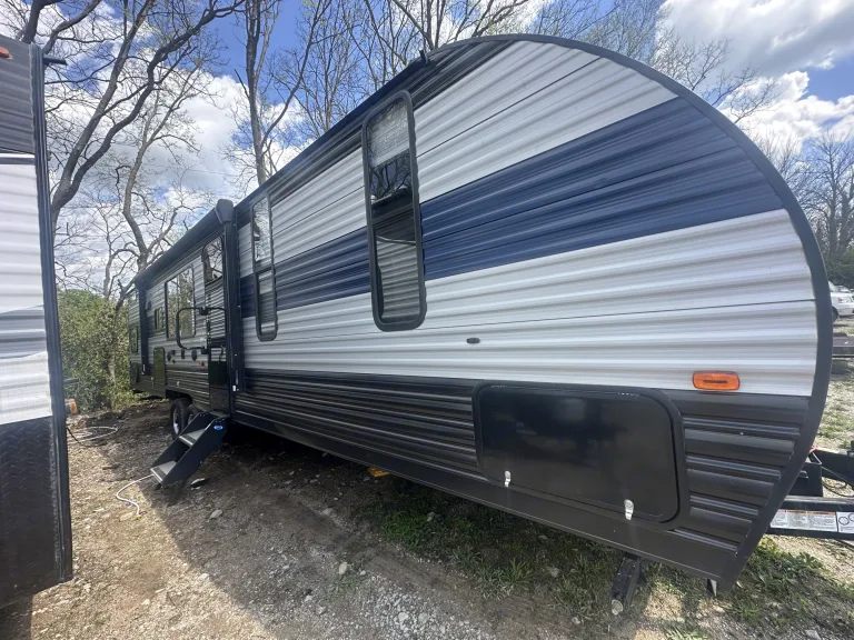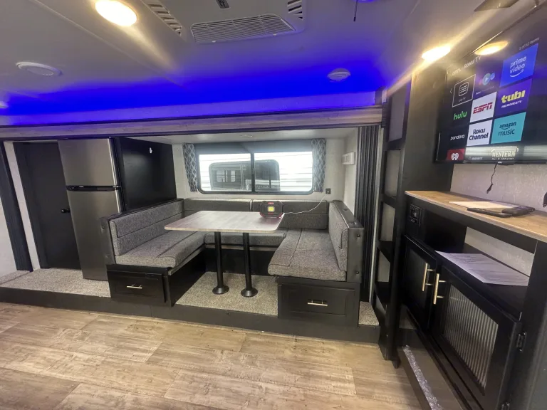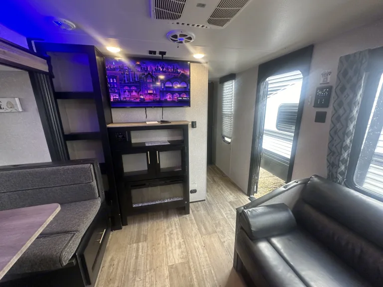 This RV rental features a comfortable bunkhouse area with four beds and storage.. Forest River Cherokee Grey Wolf 2022