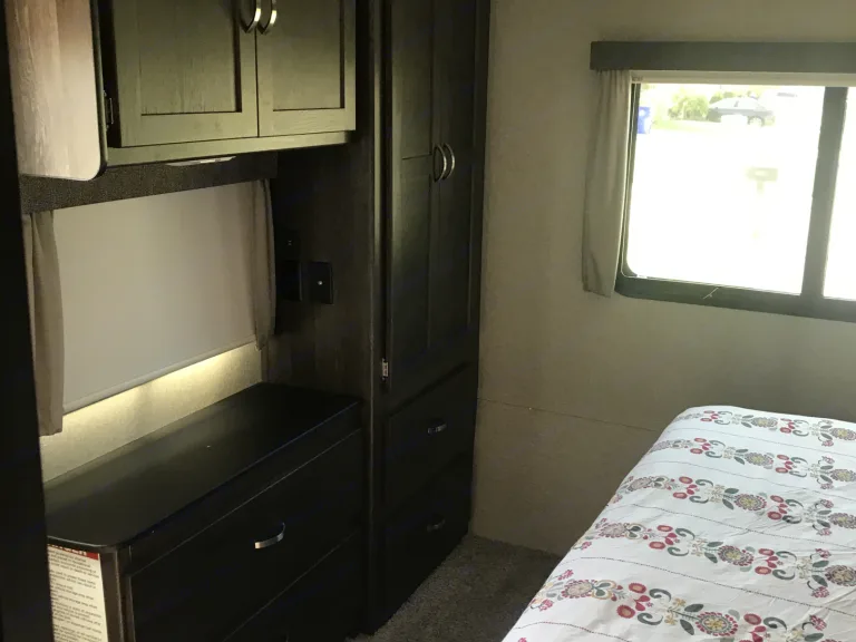 It’s a very comfortable travel trailer it can sleep up to 8 and is very spacious also has it has a you hauler you can use the back room for your toys.