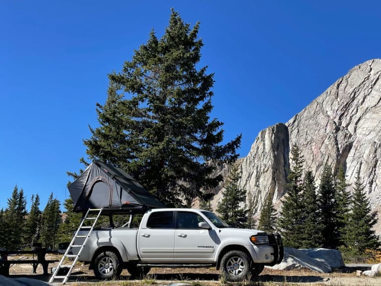 All Inclusive Overlanding Experience! Amazing Colorado Rockies!2023 Colorado State Parks Pass Included!Toyota Tundra Limited Double Cab 2006Featuring the RoofNest Falcon XL RoofTop Tent with a 23 Zero Peregrine 270 degree Awning and much more!Sleeps 2 adults and 2 youth, with 2.7 inch memory foam mattress up top and the option to include a tent with a Hest Foamy Sleeping Pad or air mattress to keep your family dry and comfortable throughout your trip. With this set up, the Seek Adventure Rig sleeps 5 very comfortably.We can accommodate your transportation by delivering and picking up the Seek Adventure Rig at Denver International Airport or a convenient place and time to help make your next Colorado vacation the best ever!Optional Kuat NV 2.0 Bike Hitch Rack to easily transport up to four bikes to your next trailhead.Installed crossbars on top of tent to carry SUP's, Canoe, or anything your adventure heart desires.The Retrax Tonneau Truck Bed Cover featuring the retractable bed cover allows for versatility in storage in addition to keeping your gear locked, safe, dry and ready to use. Its trax rack gives you the option of additional storage above the bed cover and under the tent or can be used to easily access accessory items like skis or snowboards.Yakima Tailgate cover for optional bike storage and transportation.This truck is ready to provide you with the Colorado getaway of a lifetime. We want you to experience Colorado like a native.When you book a trip with Seek Adventure your vehicle will be packed with your essential items and additional gear to make your wilderness experience more convenient and comfortable.The best part is we'll take care of all the packing, unpacking, and cleaning of the gear and the vehicle. So, all you have to do is show up and start exploring!What's includedSeek Adventure LLC is your Colorado getaway vehicle stocked with your essential gear. We do the work before your trip and the best part is we do all the cleaning and unpacking on the return.Toyota Tundra Limited 2006 is equipped with:
