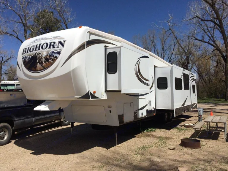 **Delivery and Setup Available** 40' Silverado Bighorn Bunkhouse edition .*Please triple check that the site you reserve is capable of accommodating a 40' camper with slides on each side. This is a large unit and this generally limits where it will fit at most parks.*Two bedrooms, two bath with a central living space. Sleeps 8 comfortably (1 king bed, two queen pull-outs, two Twin XL bunks). 4 popouts and a large awning.Outdoor kitchen and shower. Full winter package, two AC units and two heater units. Full fridge inside and a mini fridge in the outdoor kitchen.Beautifully maintained unit that is stocked with everything you need to have a great trip: dishes, pots/pans, silverware, outdoor furniture, blackout blinds, linens, towels, all adapters for various hookups (30amp, 50amp).We full-timed with our two young children while house hunting, so have worked out all the kinks. Can easily modify the bunkhouse to make room for a crib or pack-n-play if you are traveling with a little one. Baby-friendly features have been added for safety: high locks on doors, screen door protector (prevents baby from falling through the screen) and a solid rail on one of the top bunks. Wonderful family-friendly camper. We keep it fully serviced and clean, check tires, fire/CO alarms, and fire extinguisher, so all you have to worry about is having a great time!We will deliver, set up, break down, and return the camper if you are within a reasonable distance of Windsor, CO. Please contact us for details.Please remember to check the length limits at the site you reserve! We highly suggest you get written confirmation that they can accommodate a 40' camper.We also highly suggest a 50amp site in the summer. A 30 amp will only be able to run one AC at a time.We are happy to work with people who are new to RVing, please plan on taking at least an hour to learn about everything when you pick up the camper or when we drop it off.Please note: you are Required to have an actual 5th wheel hitch to pull our camper, no gooseneck to 5th wheel adapters will be approved.Expectations: