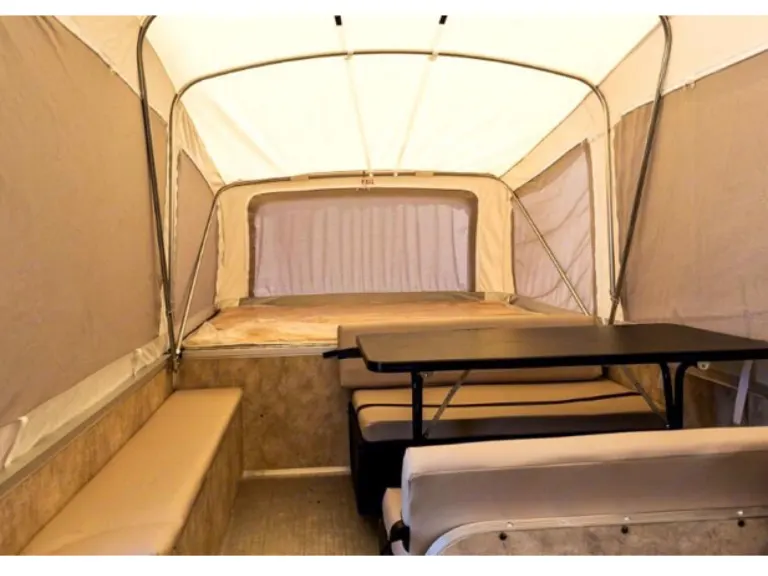 Nice soft pop up camper weighs just over 1k pounds and very easy to pull. Sheets and comforters included along with 4 peice dish set and pots and pans . 4 and 7 pin adapter for towing. Large cargo box available on rear deck.
