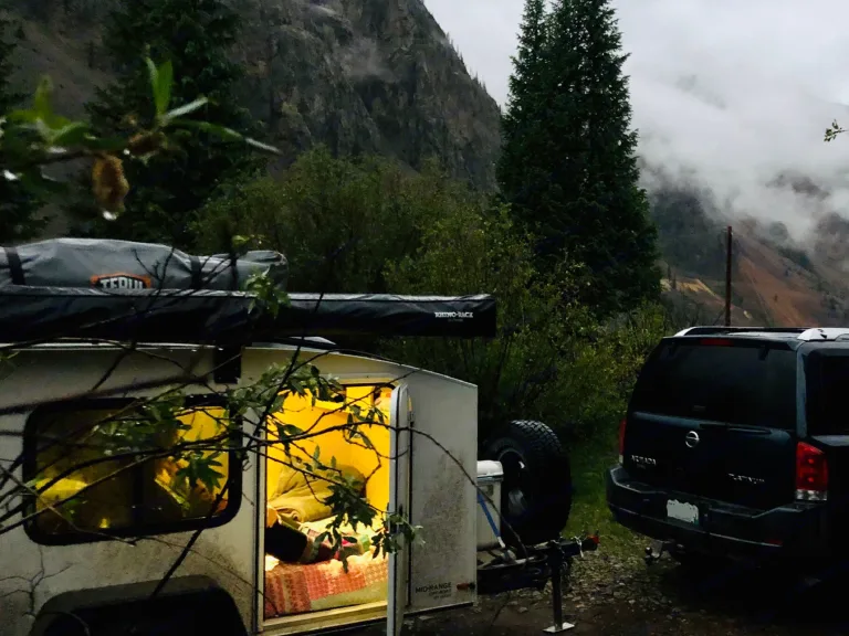 Get off the grid with the whole family or get to that hard to reach hunting spot.This highly capable rig will get you out and exploring the beautiful nature all around us (without sleeping on the ground). Betty is made to leave the paved roads behind and find the remote spots that will have your friends and family asking about your adventures.The full-size off-road tires and a clearance that is higher than most SUVs and trucks ensures she won’t be the weak link on your travels. A 120v briefcase solar panel and 25’ extension cable will keep you and the trailer a little more civilized while you escape civilization. All this capability, but only weighs 1,200 pounds before your coolers and gear.The interior features a 6” thick, full-size trifold memory foam mattress that folds up into a couch. A 6’ tall, 250lb individual and their significant other, plus their 40# dog sleep comfortably inside. Clean sheets and blankets are provided. Tons of cubbies and storage space. There is a 3-speed vent fan to cool down from a long day hiking, fishing, hunting or whatever gets you outdoors.On top of the trailer is a 3-person Tepui tent made for all four seasons. Three small humans or two full-size humans easily fit in the upper suite. Let the kids watch a meteor shower or have your hunting buddy bunk up top.Thanks to the high quality materials and superior construction, you will be comfortable in any weather. Don’t want to hang out inside during a rain storm? No worries, we got you covered. The 270 degree Bat Wing awning covers and protects the galley and entrance to the trailer from the beating sun and driving rain.The galley in back is set up with lots of storage options, full dry kitchen and ready to hit the road. Inclusions: